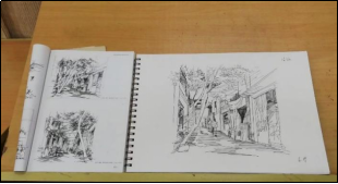 我们上美术课时正好赶上疫情最严重的时候,大家都在家里上线上课,我就在自家楼上改造了一间书房——一张桌子、一把椅子和一个风扇。第一幅钢笔画花了近3个小时,先铅笔一遍,再用钢笔描一遍,30分钟的讲解视频看了足足半天,远比其他同学进展慢,后来为了提速,我每天都坚持画一至两幅,逐步变成用铅笔打大框架,钢笔勾细节,一幅用40分钟,一个月后,可以直接用钢笔,每幅最短只用20分钟,最终也顺利拿到了这门课程的最高分。看着一摞厚厚的画,成就感油然而生……