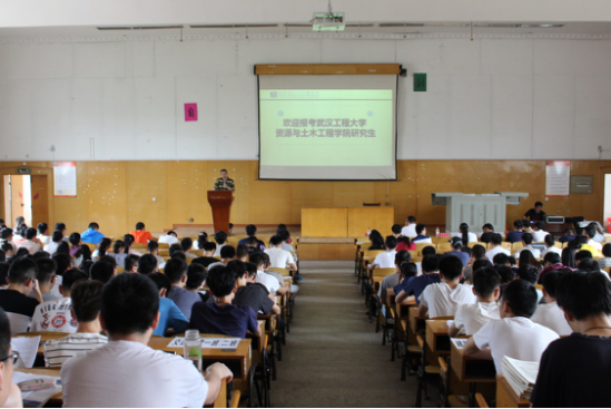 会议开始,分管研究生工作的副院长胡小弟首先介绍了资源与土木工程学院硕士点建设情况、武汉工程大学本硕连读实验班相关政策,鼓励同学们继续在本校深造,然后为同学们分析了当前考研形势、相关院校的研究生招生政策。随后,副书记郭飞介绍了学院近年来的考研和就业情况,表示学院会尽力为考研学生提供良好的学习环境,营造浓厚的备考氛围,提醒就业的同学要提前做好求职准备,密切关注学院和学校发布的招聘信息。
