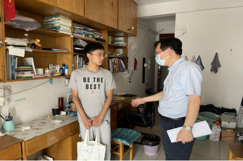 学院领导深入实验室、学生宿舍与留校学生亲切交谈,仔细询问了同学们学习、生活、健康状况,了解学生在校期间的实际需求,嘱咐学生要科学正确认识疫情,主动学习掌握防疫知识,遵守学校学院各项疫情防控规章制度,注意保持宿舍卫生环境,戴口罩、勤洗手、常通风,认真做好在校期间各项防护工作。走访宿舍过程中,学院领导还向各位留校学生赠送包含口罩、酒精消毒液等防疫物资在内的“爱心健康包”。