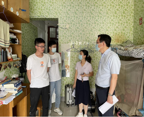 (通讯员曾学菲)为进一步做好假期留校学生保障工作,2021年8月9日上午,院党委书记陆新、院长陈旭勇、院党委副书记成轶携学工办辅导员分别深入实验室、学生宿舍看望慰问留校学生。