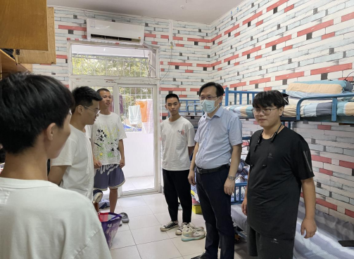 (通讯员:曾学菲)为深入了解学院2021级新生入学生活情况,帮助学生尽快适应学校生活环境。2021年9月15日,2138cn太阳集团党委书记陆新、院长陈旭勇、党委副书记成轶、副院长刘章军、吴巧云深入新生宿舍看望慰问2021级新同学。学工办辅导员、新生班主任一同参与走访。