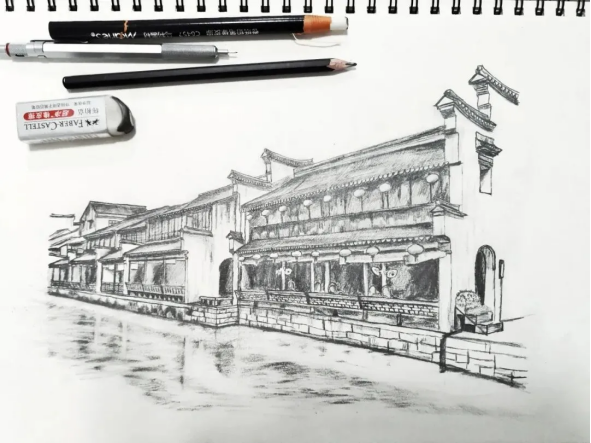 由于黄佳伟是大二转专业到建筑系才上的美术课,他的绘画功底比较薄弱。但他的画作却不逊于他人,这是因为他具有一定的摄影功底,更重要的是他不断的练习,磨练自己的定力和观察力,能够静下心来钻研。在不断的探索中完善自己的能力。