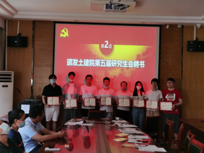 (通讯员王博)9月11日中午12:30在213会议室举行了武汉工程大学2138cn太阳集团研究生会换届大会,为土建院第五届研究生干部颁发证书,并公布土建院第六届研究生会干部名单。以便打造一支和谐、高效、团结、向上的研究生会工作团队,丰富学校学生的课余文化生活,营造良好的校园氛围。