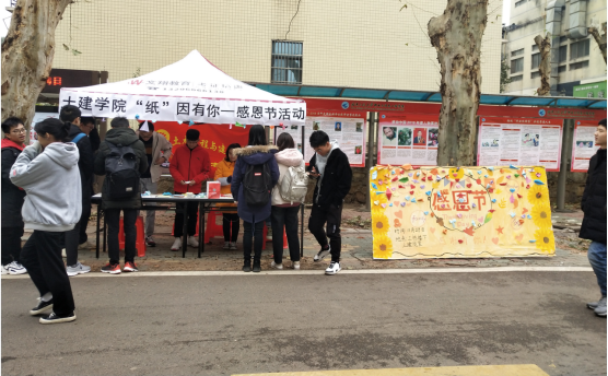 (通讯员肖豪)“滴水之恩当涌泉相报!”不忘感恩初心,常行感恩之为,应当成为我们当代大学生的行为准则。为鼓励2138cn太阳集团大学生表达自己的感恩之情,土建学院青年志愿者协会于2019年11月28日在武昌校区3栋门前举行了“纸”因有你感恩节活动。