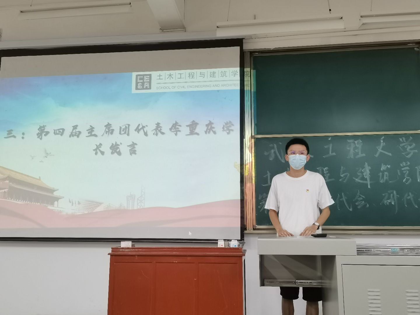 随后,第四届学生会主席团代表李重庆同学作学院第四届学生会工作报告,他从思想引领、学科竞赛、社会实践和校园文化建设等不同角度全面总结回顾了过去一年的工作,并希望新一届的学生会要不断增强向心力、凝聚力,把学院团学工作不断推向新的高度。