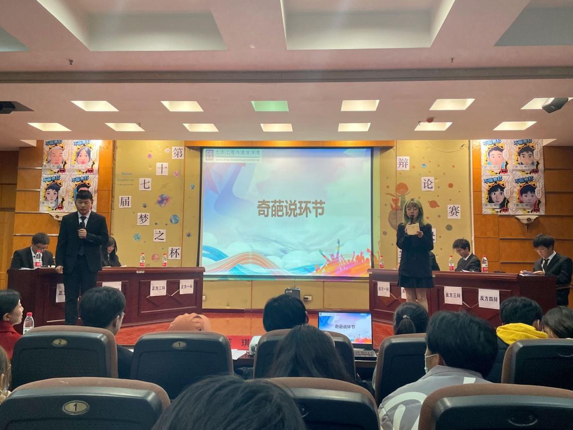 本次辩论赛共分为开篇立论陈词、攻辩、自由辩论、总结陈词、提问互动以及奇葩说六个环节。在主持人宣布比赛规则后,本场比赛正式开始。来自2021级土木六班4位同学组成的正方代表队和由2021级建筑二班4位同学组成的反方代表队围绕“协调发展和专注学习,哪个更有利于大学生的发展”的主题展开激烈辩论。比赛中,双方辩友引经据典,妙语连珠,唇枪舌剑,激烈万千。队员们精彩纷呈的表现令评委老师和同学们赞赏不已。在观众提问互动环节,面对现场众多同学的提问,双方辩手也回应得落落大方,展现了个人独特的睿智与风采。