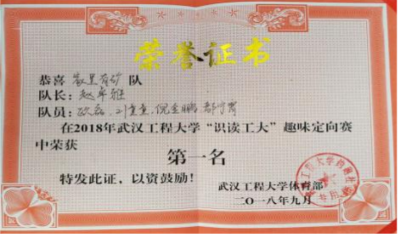2018年9月,我拿着录取通知书来到武汉工程大学,入学不久后,院团委学生会招新,我积极报名并参与面试最终成为院团委学生会学习科技部的一名干事。在我们军训期间,学院团委学生会就组织了一次学长学姐经验交流分享会,听完优秀学长学姐的分享之后,我对自己的大学生活有了初步的规划。大一期间,我在认真完成学生会的工作同时也勤奋学习和积极参与学校组织的各类活动,争取做到全面发展。因此,在学生会的评选中,我被选为“优秀干事”;在院里展开的体育活动中,我获得了“识读工大”趣味定向赛第一名、第一届武汉工程大学(武昌校区)新生杯羽毛球混双组合季军等;在院里举办的文艺活动中,我所在寝室也积极参与文艺汇演并获得“文明寝室称号”。