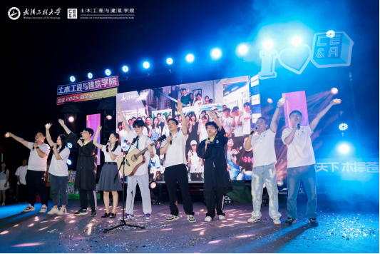 毕业生与土建学院全体辅导员共同演绎的音乐串烧《等你下课的那些年》将晚会推向高潮。他们一起回顾了校园生活的点点滴滴,在熟悉的旋律和温馨的画面中重温了青春的美好时光。