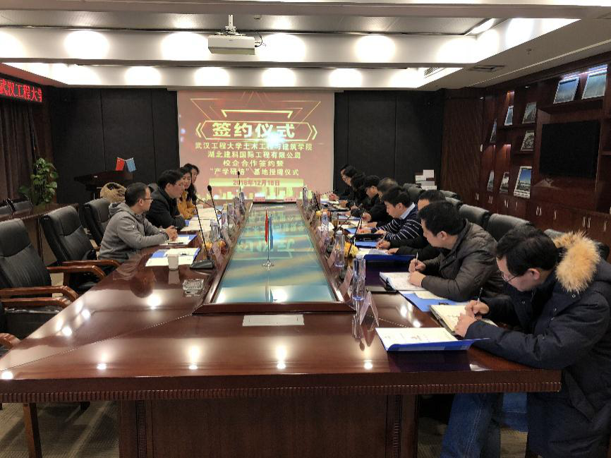 会议由湖北建科国际工程有限公司管理中心副总经理李黎主持,陈旭勇副院长、邬毛志董事长分别代表武汉工程大学2138cn太阳集团、湖北建科国际工程有限公司致辞。陈旭勇副院长主要介绍了我院专业设置、学科建设、人才培养、专业实习等方面的情况,邬毛志董事长介绍了湖北建科国际工程有限公司的部门设置、专业资质、市场开拓、未来发展等方面的情况。
