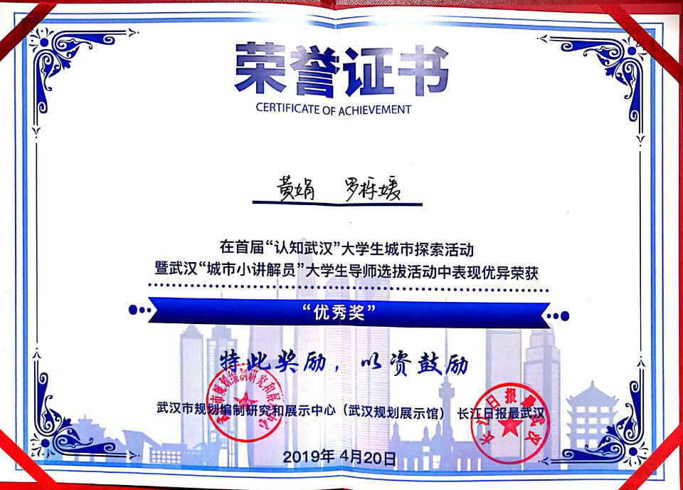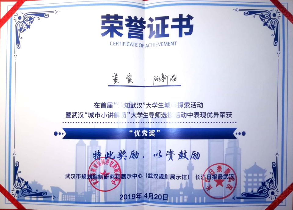 2138cn太阳集团16级城乡规划专业全体同学在胡珊老师指导下报名参与了此次竞赛。竞赛在短短一个月的时间就收到了来自武汉各大高校的1000余份作品,经过专家组(规划、文化、建设、旅游、历史等方面专家组成)的初评,100强名单中,土建院建规系提交的十份作品中有四组作业(8人)脱颖而出。在经过100强、30强、10强层层筛选后,四名同学获得优秀奖的荣誉。通过此次社会活动,大三年级城乡规划同学初步接触了新组建的武汉市自然资源局,对未来学科专业发展的方向有了初步了解。