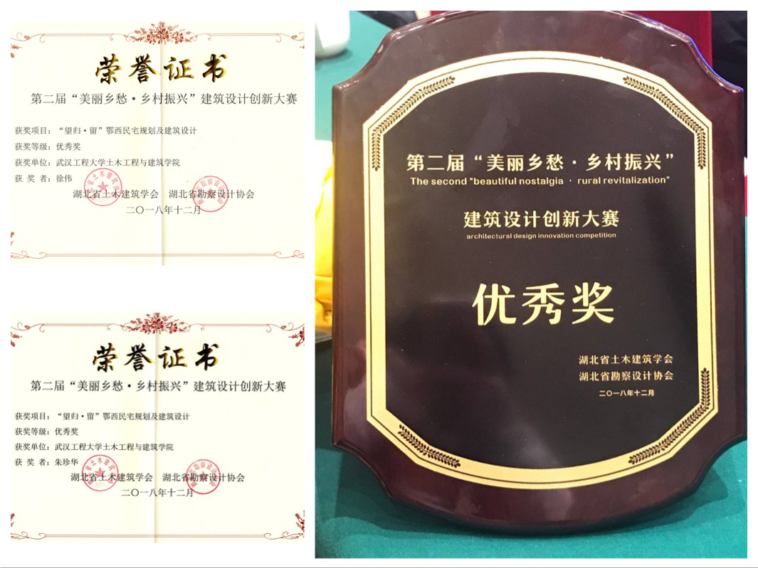 我院徐伟,朱珍华老师及团队的作品“望归·留”鄂西民宅规划与建筑设计在湖北省第二届“美丽乡愁•乡村振兴”建筑设计创新大赛获奖。本次大赛最终获奖的十一个项目作品,都很好地保留利用了乡村的原始风貌,在充分尊重乡村社会价值体系和集体感情记忆的基础上,发掘乡村的文化基因,延续乡村的历史文脉,并综合运用“在地性”、“意境化”的现代设计理念与手法打造属于乡土的、生态的、美丽的新时代乡村建筑。集中反映了近两年来省内建筑师在美丽乡村建设方面的潜心研究和深入实践。