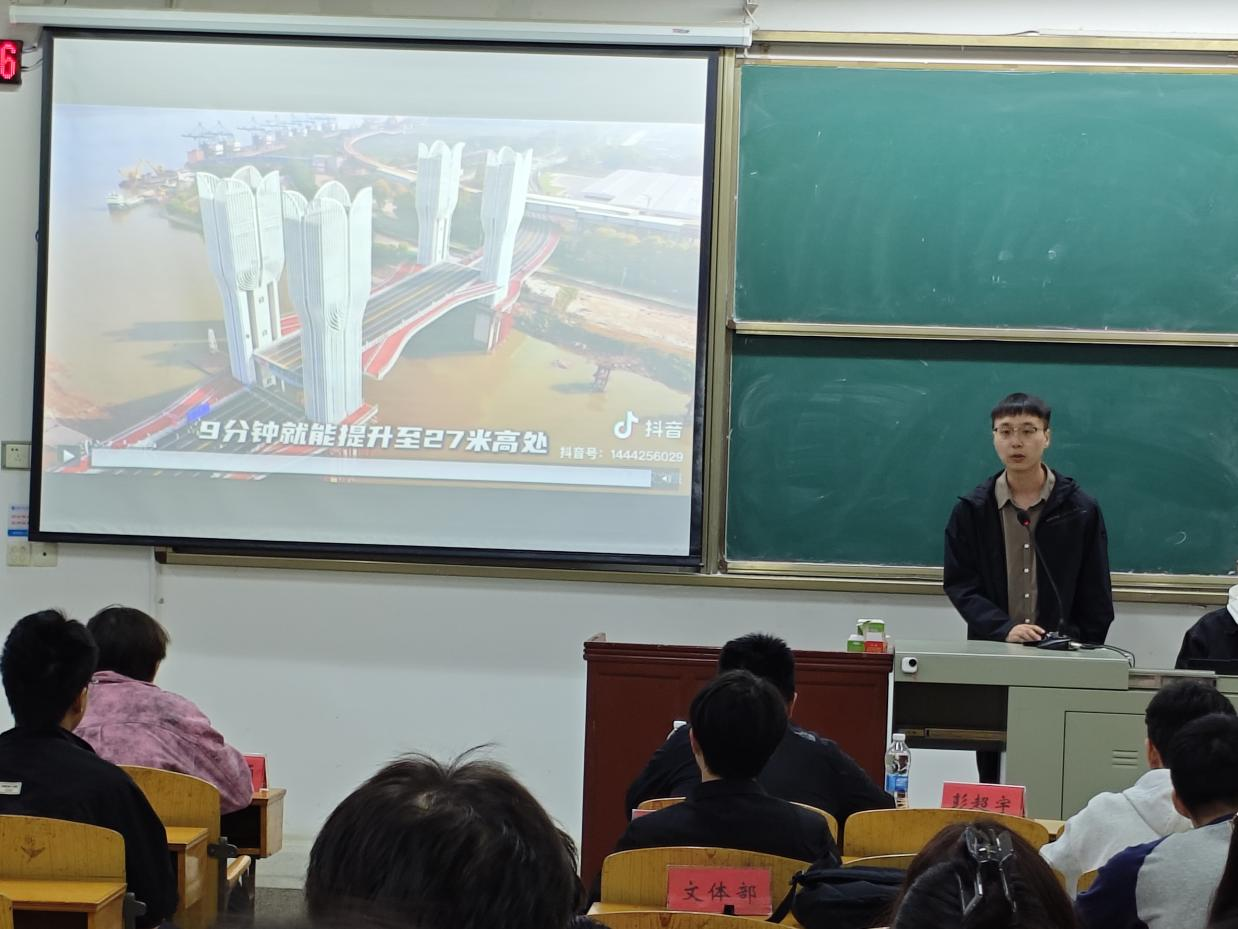 2024级本科生辅导员彭超宇为全体学员讲授了以“桥见中国,桥通未来”为主题的微团课。他以桥梁为媒讲授了新时代土木青年的使命传承,详细阐述了三代桥梁人用青春和热血铸就的奋斗史诗。桥见中国,是三代桥梁人用汗水浇筑的丰碑;桥通未来,需要新时代土木青年踔厉奋发,奋力谱写时代新篇章。