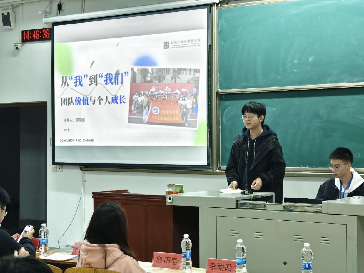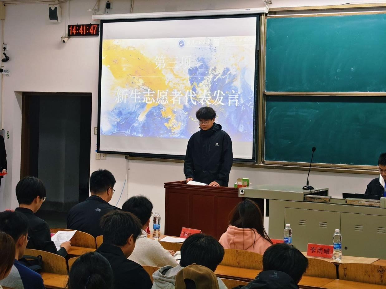 来自学生会办公室的新生代表尹相毅与大家分享了加入团学组织的感受以及他的收获,他表示,在团委学生会这个平台上不仅让他结识了许多热心的同学,开阔眼界,也让他在协调沟通、活动组织等各个方面都有了很大的提升,为自己全新的大学生活增添了很多乐趣,也使自己感到十分充实。