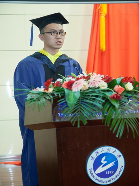 “我们会继续秉承工大精神,做胸怀感恩报效家国的人,做孜孜求索永不言弃的人。”毕业研究生代表游应强同学踌躇满志奔向未来。