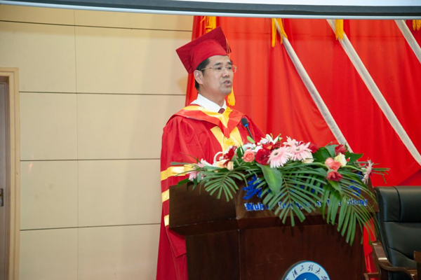 校长王存文发表了热情洋溢的讲话。他代表全校教职员工对全体圆满完成学业、即将踏上人生新征程的毕业研究生表示热烈的祝贺。同时,对全体毕业研究生提出三点希望作为临别赠言:一是要求真。希望毕业生们始终牢记“格物明理致知笃行”的校训,继续发扬“艰苦奋斗,自强不息”的工大精神,持续磨炼刻苦钻研、严谨治学的品质,永远保持对世界的好奇之心和探索之心。二是要有担当。希望毕业生们带着强烈的责任感与使命感,志存高远,脚踏实地,将个人梦想自觉融入国家发展需要,在这个伟大的时代创造性地发现成长和成功中的机遇,以青春之我、奋斗之我,做民族复兴的追梦者、圆梦人。三是要心系母校。工大永远是毕业生坚实的后盾和停泊的港湾,学校和老师们始终关心关注大家的发展,期待毕业生们放手拼搏、展翅翱翔,向母校频传捷报。