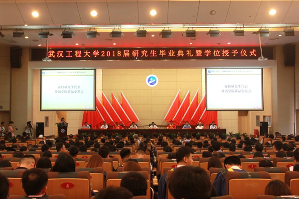 荆楚大地聚人才,流芳园里喜庆悦。6月14日上午,我校2018届研究生毕业典礼暨学位授予仪式在庄严的国歌声中拉开帷幕。学校师生、家长、校友齐聚四教多功能报告厅,温情送别2018届毕业研究生。