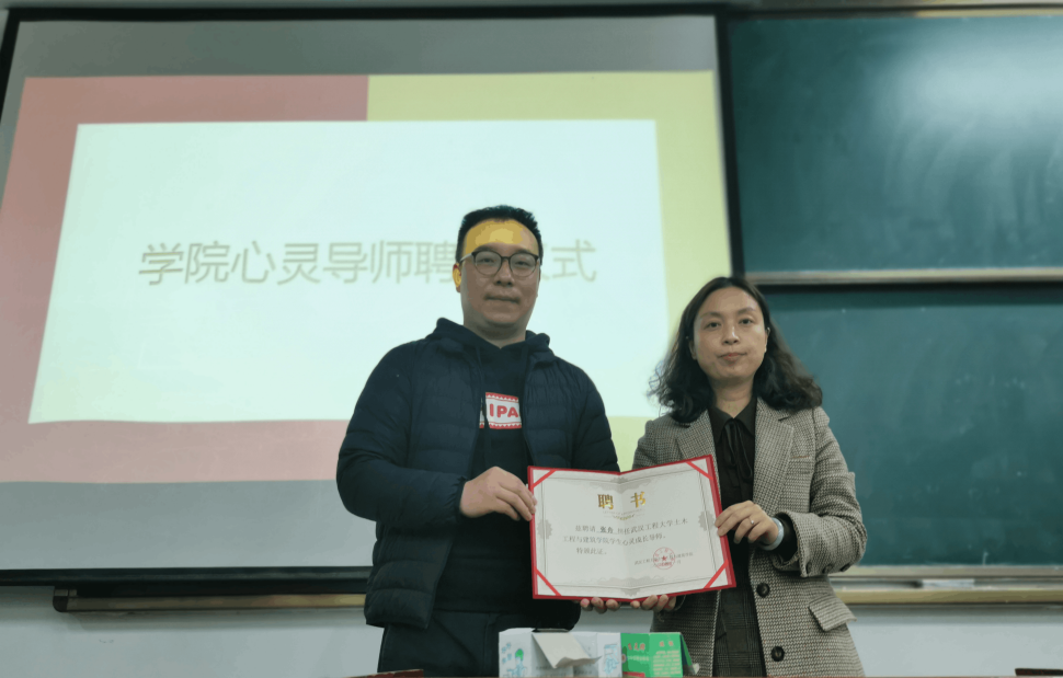 会议伊始,院党委副书记成轶就成立学院心理健康协会的背景、意义做了简要概述,并宣布学院心理健康协会成立,随后为学院学生心灵成长导师张舟教授颁发聘书。
