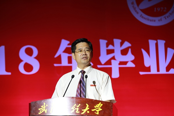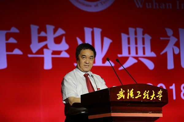 上午9时,武汉工程大学2018年毕业典礼暨学位授予仪式在雄壮的国歌声中拉开帷幕。校党委书记程幼金、校长王存文、校纪委书记徐慢、副校长张彦铎、陈再平、陆培祥、四级职员喻九阳,校长助理池汝安出席了典礼。学位委员会成员、各学院领导、职能部门负责人、教师代表、家长代表、全体毕业生辅导员、班主任和2018届全体毕业生参加典礼。