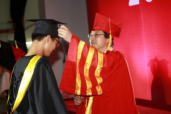 来自机电工程学院机制创新实验班的杨正蒙同学和法商学院法学专业的刘鑫桐同学分别作为毕业生代表发言,他们述说了四年在学校成长的感动点滴,表达了对教师感恩、对母校的深深眷念和不舍,并表示将牢记格物明理、致之笃行的校训,无论走到哪里,母校永远是毕业生的根和源。