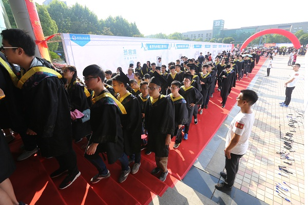 6月15日上午8时,身着学位服的2018届毕业生踏上红毯。2014年,手持G2014高铁票从全国各地出发来到武汉工程大学,经历了四年的欢笑与泪水,收获与成长,千言万语汇成一句:I LOVE WIT。今天,经过毕业典礼暨学位授予仪式的庄严洗礼,将乘坐WIT20180615次航班飞向世界各地,书写全新的篇章。