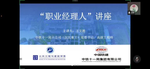 (通讯员曾学菲)2022年5月20日晚,由学校招生与就业工作处主办,2138cn太阳集团承办的职业经理人行业讲座在武昌校区W2202教室、学院阅览室和腾讯会议线上同步进行。中铁十一局第六公司(汉江重工)党委书记、高级工程师王文胜受邀作报告。