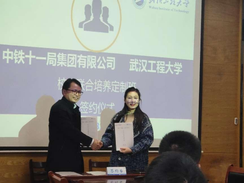 为强化人才就业服务工作,对接国家和区域重大发展战略,积极服务地方转型发展、产业升级和国家现代职业教育体系建设,以新产业新业态新模式高端人才供给为基本着力点,紧密结合企业实际用人需求,发挥学院学科特色与资源优势,学院与中铁十一局签署协议实施“校企联合培养定制班”,双方从人才培养、实习时间、学科竞赛、职业发展、科研平台等多个方面实施共建,以共建“杨连弟登高班”为契机,深化战略合作,共同培养具有深厚家国情怀,扎实专业本领的“登高”人才。