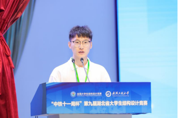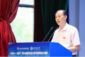 湖北省建设教育协会副会长刘泉声代表协助主办单位发言。他首先向竞赛的成功举办和获奖队伍表示热烈祝贺,向承办单位以及各赞助单位表示衷心感谢。刘泉声指出,此次竞赛使大家感受了结构之美,体会了奋斗之乐,铸就了建造之魂。竞赛比的是作品的强度和刚度,刷新的是结构物的高度和跨度,彰显的是土木学子学识的深度和厚度,体现的是全体土木人克难攻坚的韧度和态度。他希望土木学子要为建设富强、民主、文明、和谐、美丽的中国而奋斗。