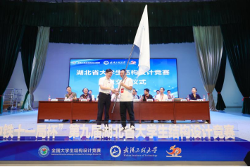 最后,武汉工程大学2138cn太阳集团院长陈旭勇将湖北省结构竞赛赛旗传交到武汉华夏理工学院土木建筑工程学院院长潘梽橼手中,为期4天的第九届湖北省大学生结构设计竞赛胜利闭幕。