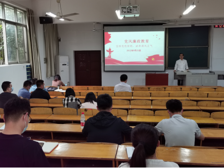学院党委书记陆新围绕“大力弘扬清廉守正,担当实干之风”主题,从坚持党性原则、加强作风建设和强化廉政教育三个方面,讲授了一堂生动的廉政党课,并带领全体教师学习了《中国共产党廉洁自律准则》、《中国共产党纪律处分条例》、《新时代高校教师职业行为十项准则》等法规和制度规范,进一步增强了广大教师的法治意识、纪律意识和廉洁从教意识,并勉励全体教师要牢记崇高使命,坚守神圣职责,争做“四有”好老师,当好育人大先生,努力创造出无愧于人民、无愧于伟大时代的业绩。