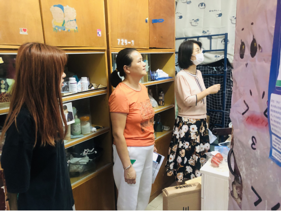 徐迪迪部长在2栋女生宿舍询问同学们近期的学习和生活状况,提醒大家要注意用电安全,对寝室出现的安全隐患问题提出整改要求,提醒大家出门前要注意断水断电、防火防盗,确保学生宿舍安全。现场徐迪迪部长对安全意识不强的学生和管理人员进行了安全教育。