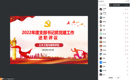 (通讯员:张中强)为深入学习贯彻党的二十大精神,全面落实党建工作责任制,不断加强和提升党支部建设水平,努力推动学院党建工作高质量发展。按照学校党委组织部统一部署,1月7日上午,2138cn太阳集团通过线上会议组织召开2022年度组织员和支部书记抓党建工作述职评议会,学院党委书记陆新,党委委员和各党支部书记参加会议,会议由学院党委副书记成轶主持。