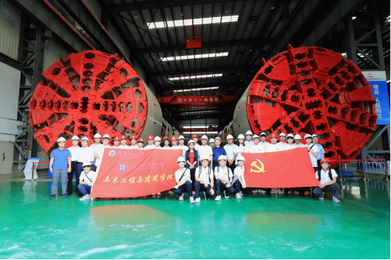 会前,朱青林一行参观了武汉重型装备有限公司生产车间,实地察看盾构机生产焊接过程。