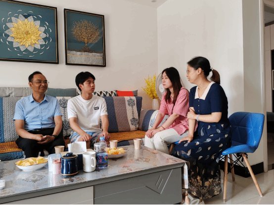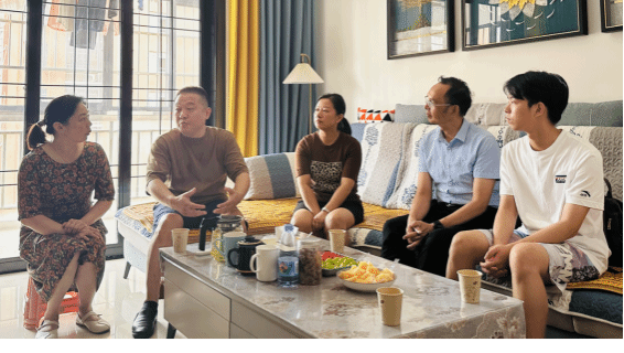 (通讯员:夏添)为更加全面地了解2023级新生,进一步畅通家校共育渠道, 学院党委书记陆新、学院党委副书记成轶、道桥专业老师黄敏和本科新生辅导员夏添一行于8月21日赴黄冈市黄梅县走访了2023级土木工程专业新生小陶的家庭,把新生入学教育提前“做到家”。