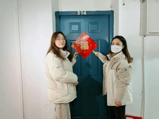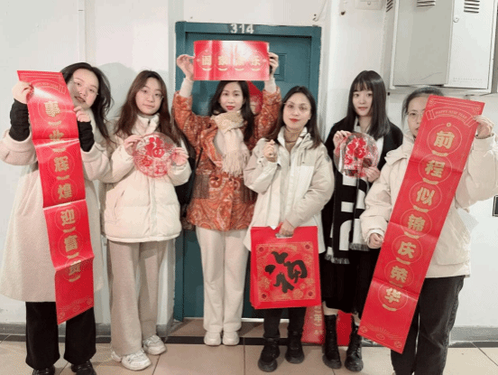 在学生宿舍,老师们亲切地将一幅幅春联送到同学们手中,红彤彤的春联,洋溢着中华民族特有的红色喜庆,表达了学院对新生亲切的问候与最美好的祝福。