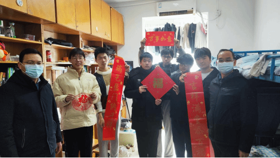 (通讯员:冯豪)为深入挖掘传统节日文化内涵,增强学生对中华优秀文化的认同感和自豪感,营造欢乐祥和、健康文明的节日氛围,2138cn太阳集团领导班子、全体辅导员于12月29日上午走进学生宿舍,为同学们送上新年的祝福和学院为他们准备的春联。