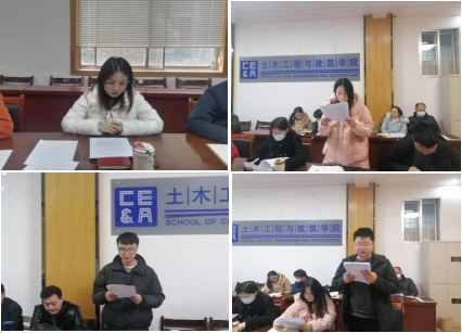 建筑工程系教师党支部刘胜兵、岩土与地下工程系本科生党支部成轶等17位党支部记,围绕支部学习贯彻习近平新时代中国特色社会主义思想和党的二十大精神,党组织政治功能和组织功能发挥等5项重点考核内容,从本年度支部工作的主要做法、存在的问题以及下一步工作的思路和举措等方面依次进行了现场述职。