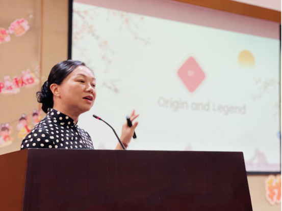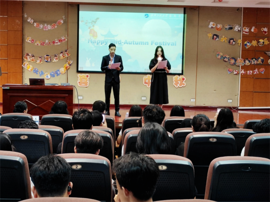 国际学院汉语教师游桂兰教授结合有趣的互动游戏,生动描述了中秋节的历史和传说,介绍了各地中秋节的活动,阐释了《水调歌头》蕴含的美好寓意,向现场师生传递美好的节日祝愿。